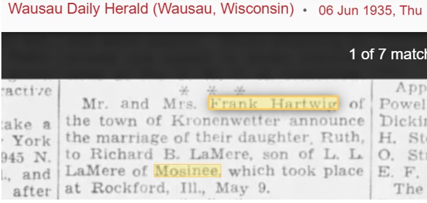 Ruth Evelyn Hartwig LaMere b. 05/05/1914 d. 10/08/2004